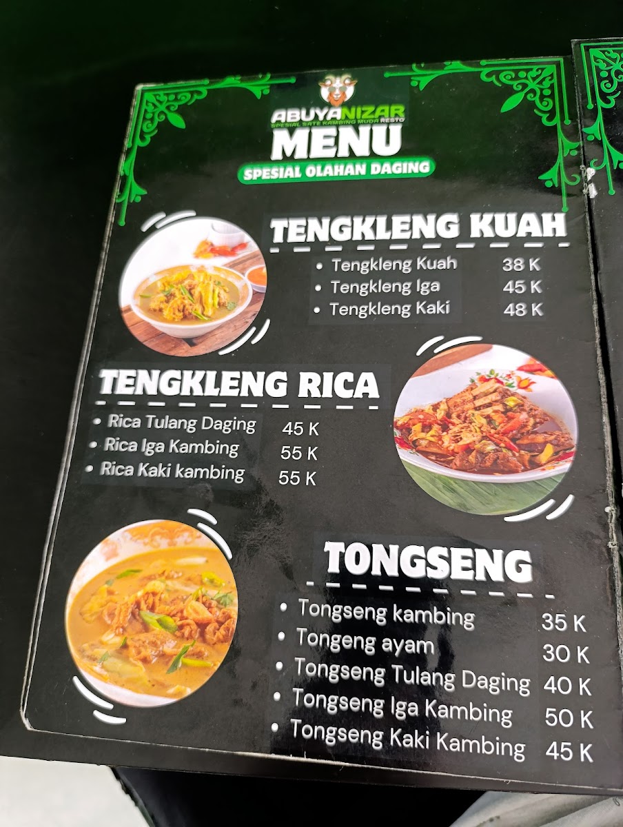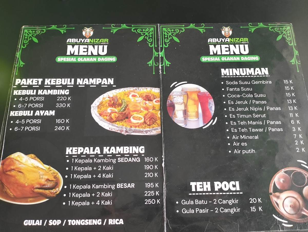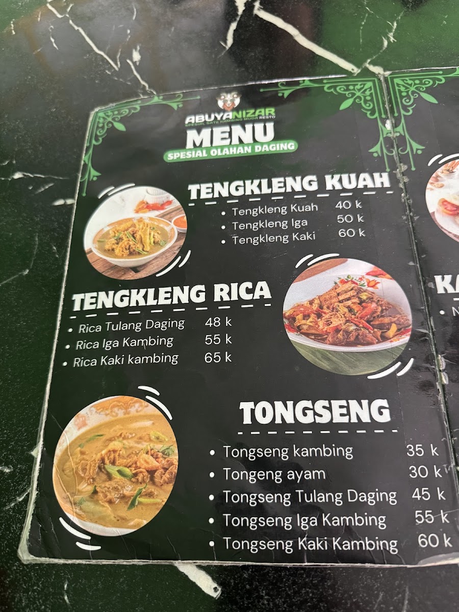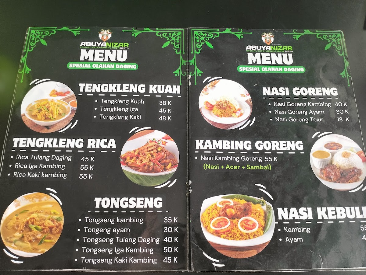 ABUYA NIZAR RESTO, nestled in Jatimelati, Bekasi, is a satay haven celebrated for its authentic Tegal-style kambing and ayam satays. The highlight is their Sate Kambing Muda, offered both lean and mixed with fat, boasting tender, flavorful meat free of the typical strong mutton odor. For those who prefer lighter fare, the Sate Ayam options—from skinless to with-skin variations—deliver juicy, perfectly grilled bites.
